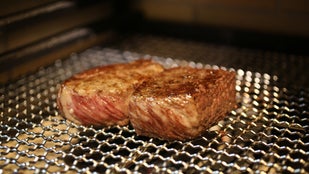 赤外線の輻射熱は表面を均一に素早く焼き上げて食材を硬化させるため、内部のうま味を閉じこめてしまう働きがあります。表面がパリッとした焼上がりになり、内部はとてもジューシーに仕上がります。それによってドリップや旨味が零れ落ちないので、旨味が凝縮されて美味しく感じられます。