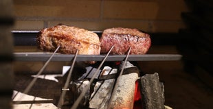 特徴は高温になる炭の直火や遠赤外線による輻射熱、そしてレンガの蓄熱による対流熱によって、炉内全体を高温に保ちオーブンのような状態にすることで、肉に対して高温かつ均一な火入れが可能になります。至高のステーキが完成します。