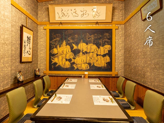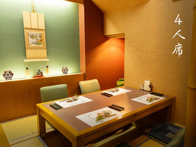 琴の音が流れている店内では、4名様・6名様の座敷部屋があり高級感が漂います。ビジネスシーン・記念日など、ご家族・ご友人・恋人となど、色々なシチュエーションでご利用頂けます。
