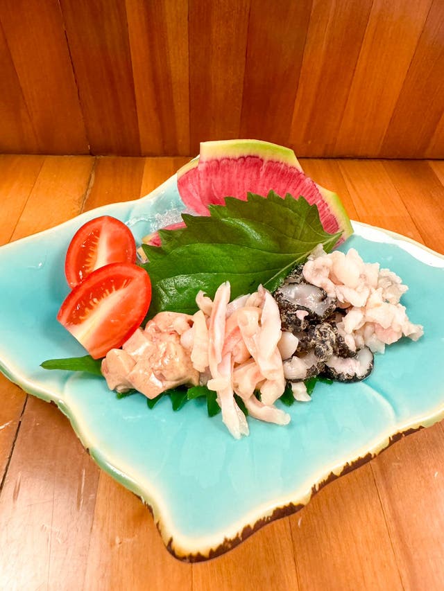 新鮮だからこそ、希少部位の・生の肝・胃袋の湯引き・皮の湯引き・皮と身の間(とおとおみ)が召し上がることができます。