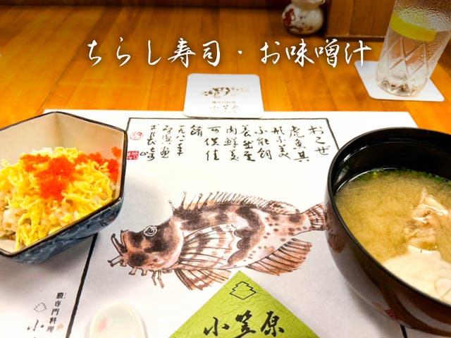 お米は厳選し「井上農場」を利用しており、新メニューちらし寿司も絶品です。あら汁はお椀を開けた瞬間、おこぜとお味噌汁の風味が広がります。