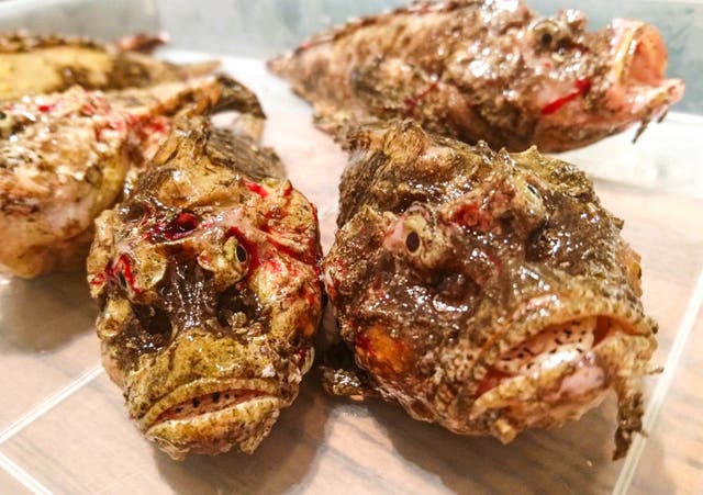 - おこぜの見た目とは反比例する繊細かつ深い味わい!活き造り・煮付け・唐揚げ・汁物など絶品です。