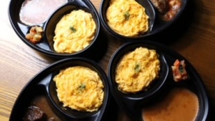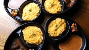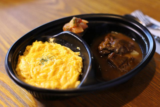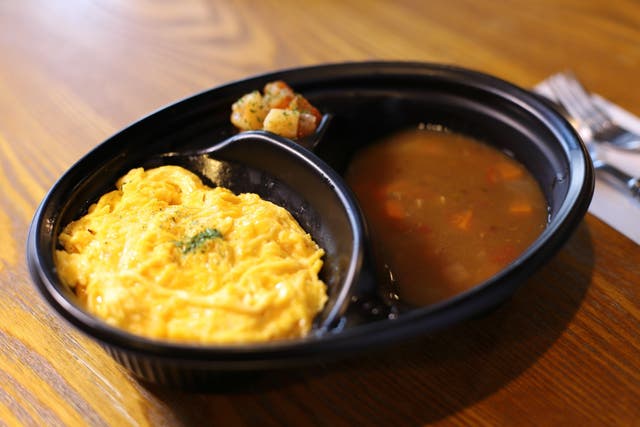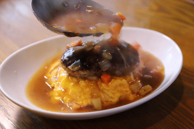 - 飛騨牛と地元野菜を3日間煮込んだ特製デミグラスソースとふわとろの卵が織りなすハーモニー。