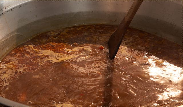 当店のデミグラスソースは、飛騨牛と野菜の旨味をしっかりと引き出す為、圧力鍋でじっくり3日間煮込みます。「一から手づくり」だからこそ生まれる、まろやかで深みのある味わいは、多くのお客様からお喜びいただいています。