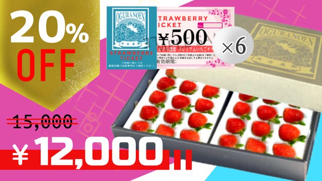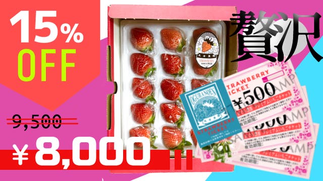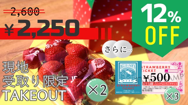 内容:◎極上いちご×2 ◎いちご体験チケット500円分×6