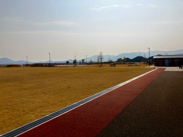 おぐら農園から徒歩5分の場所に、カブトガニやシオマネキなどの生き物が多く棲む、曽根干潟を見下ろす「曽根東臨海スポーツ公園」があります。
