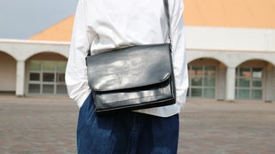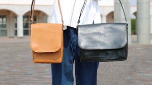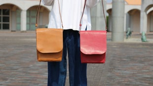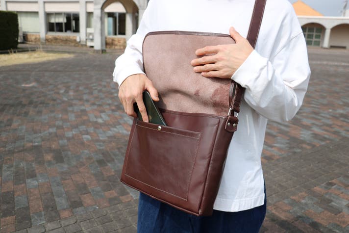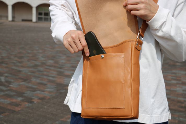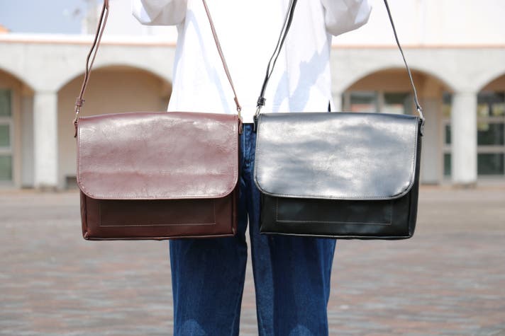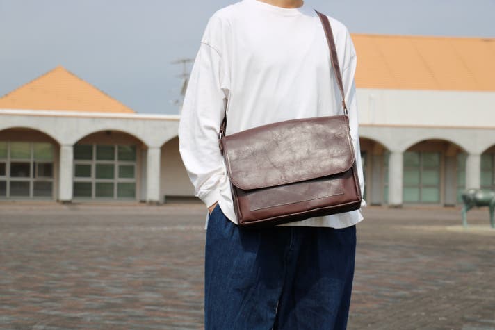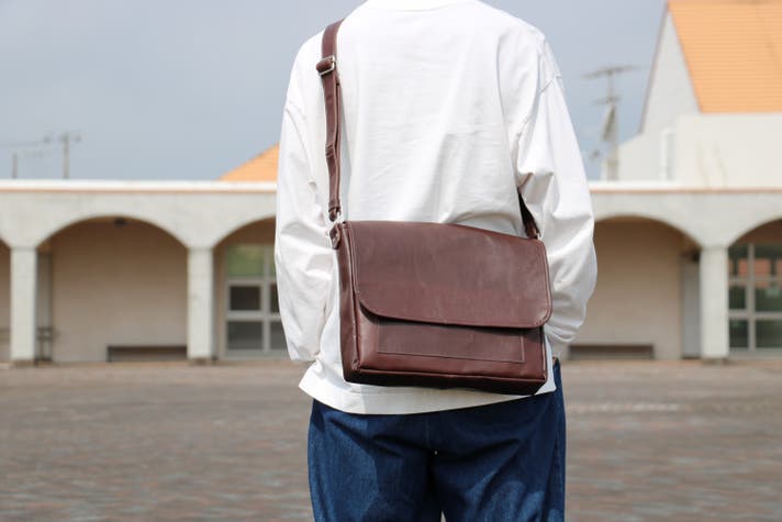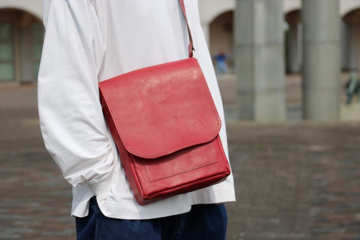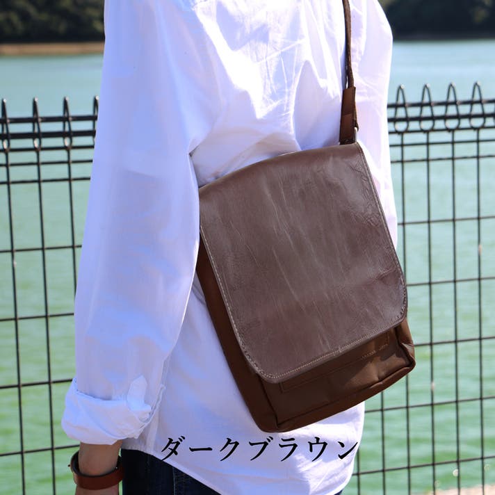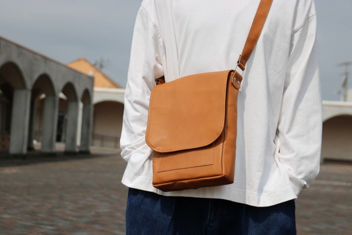 - 縦型、横型のデザインから選べる服装にも合わせやすいレザーのショルダーバッグ