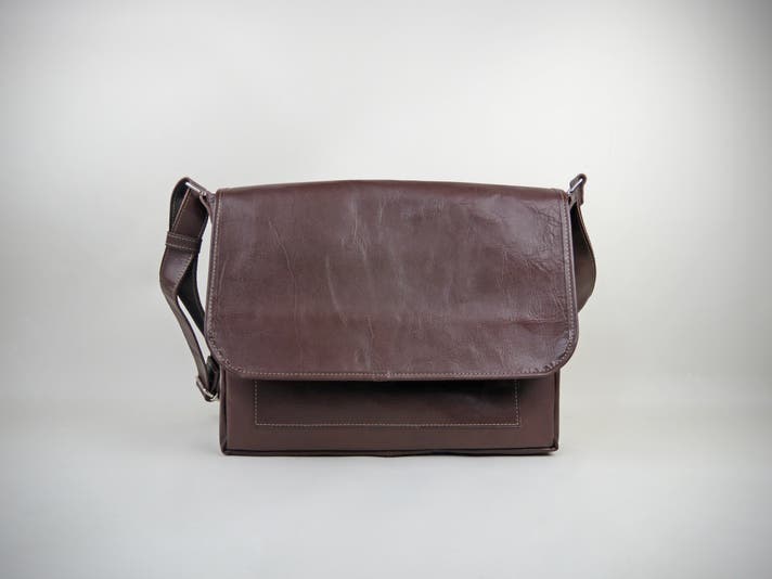 シンプルで使い勝手のいいカブセ型 レザーショルダー