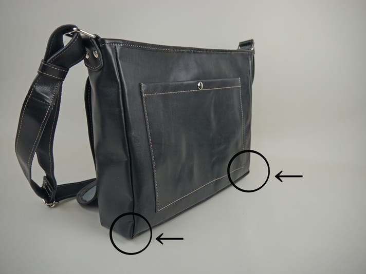 通常、通しマチの場合角の部分は縫製の都合上丸みを持たせることが多いです。