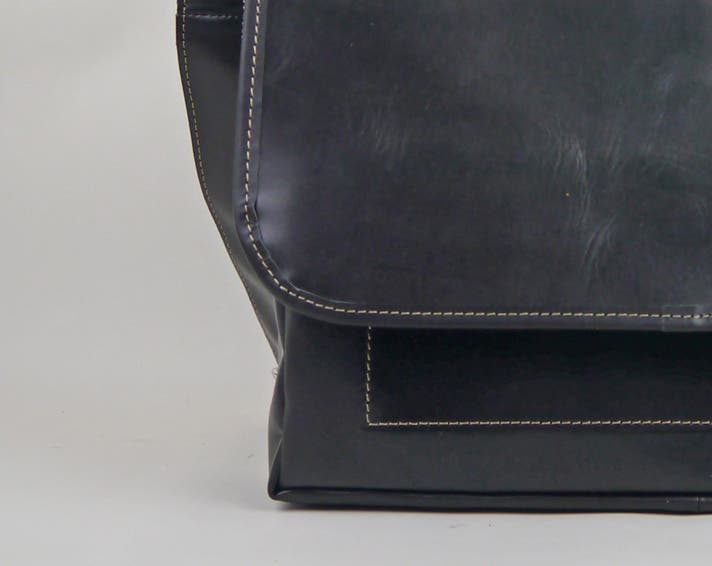 そして角張ったデザインでもカブセの角部分を革のへり巻きで丸みを付け