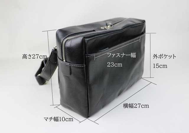 外ポケット:横約27cm×高さ約15cm ファスナー幅約23cm
