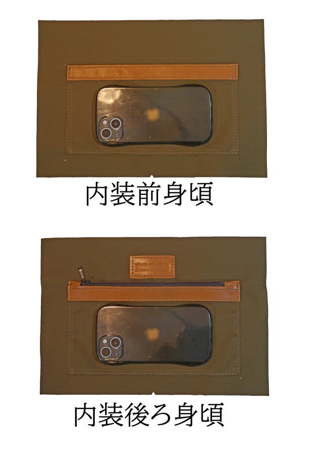 また、内ポケットが前後にあり小物の収納に好適です。