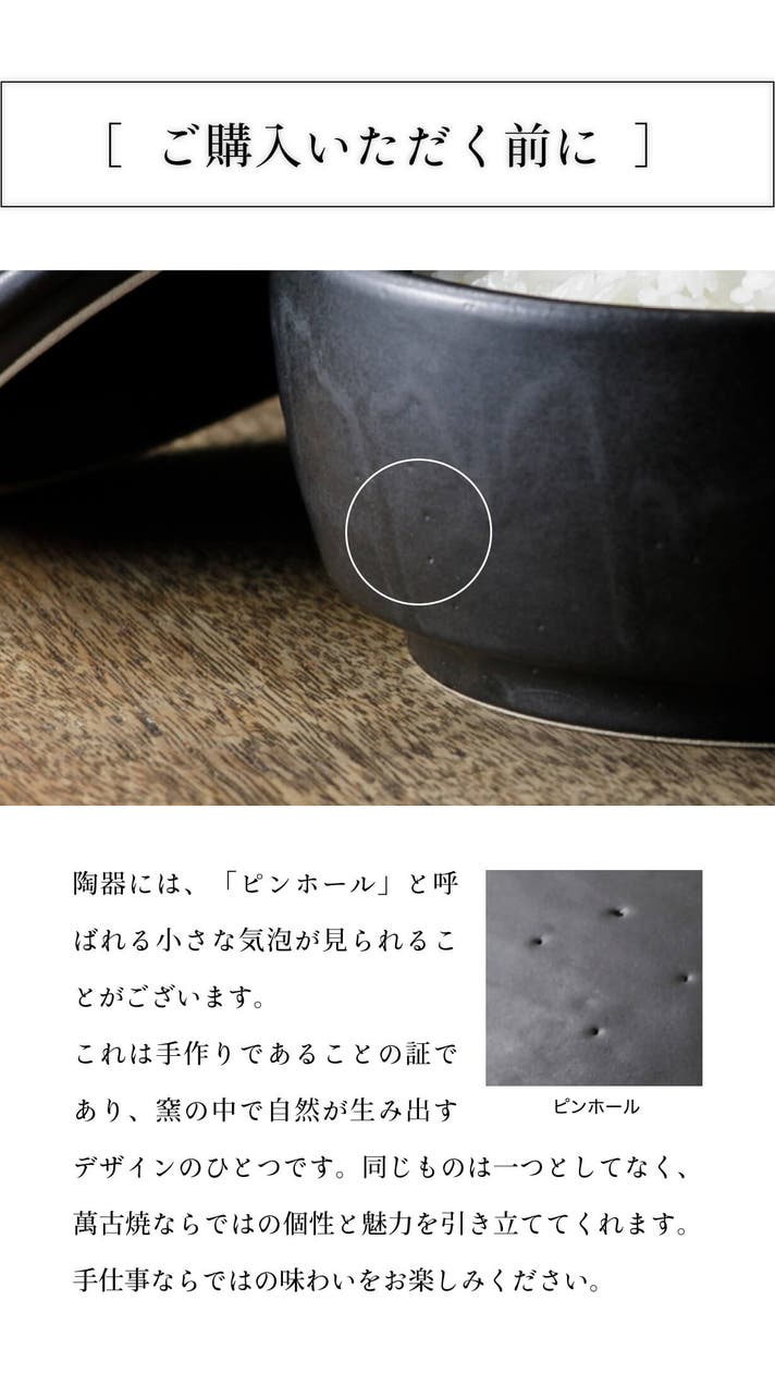 A. 「ピンホール」と呼ばれる陶器特有の気泡が見られることがあります。これは釉薬をかけた際、生地についた有機物が焼かれ、小さな凹みとなる現象で、窯の中で作り出される自然デザインです。ピンホールは手作りである証拠であり、萬古焼の特徴を最大限に引き出してくれます。同じものは一つとなく、まさに世界に一つだけの手仕事の味わいとしてお楽しみください。