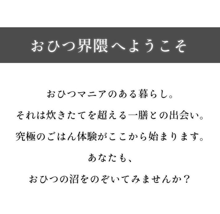 - 【なぜ”おひつマニア”なの?】炊きたて=ベストだった常識が音を立てて崩れる、究極のごはん体験。