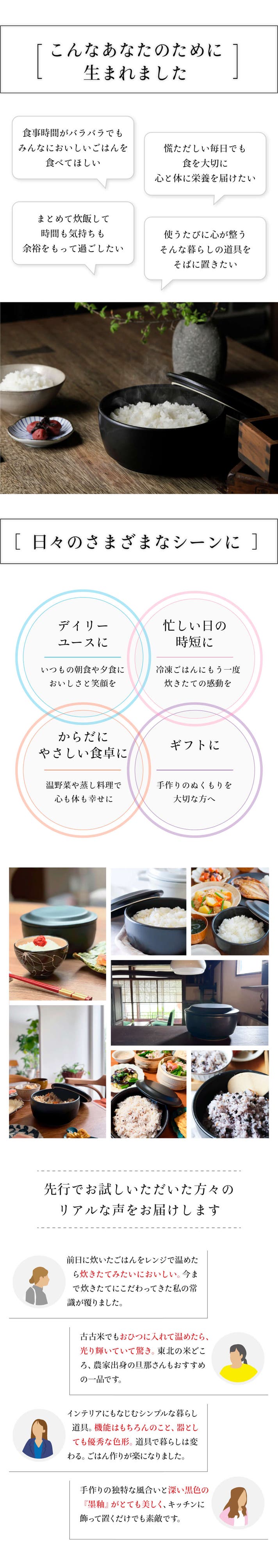 - 【炊きたて至上主義のあなたへ】「陶の力」と「匠の技」で、炊きたて信仰を心地よく裏切ります。
