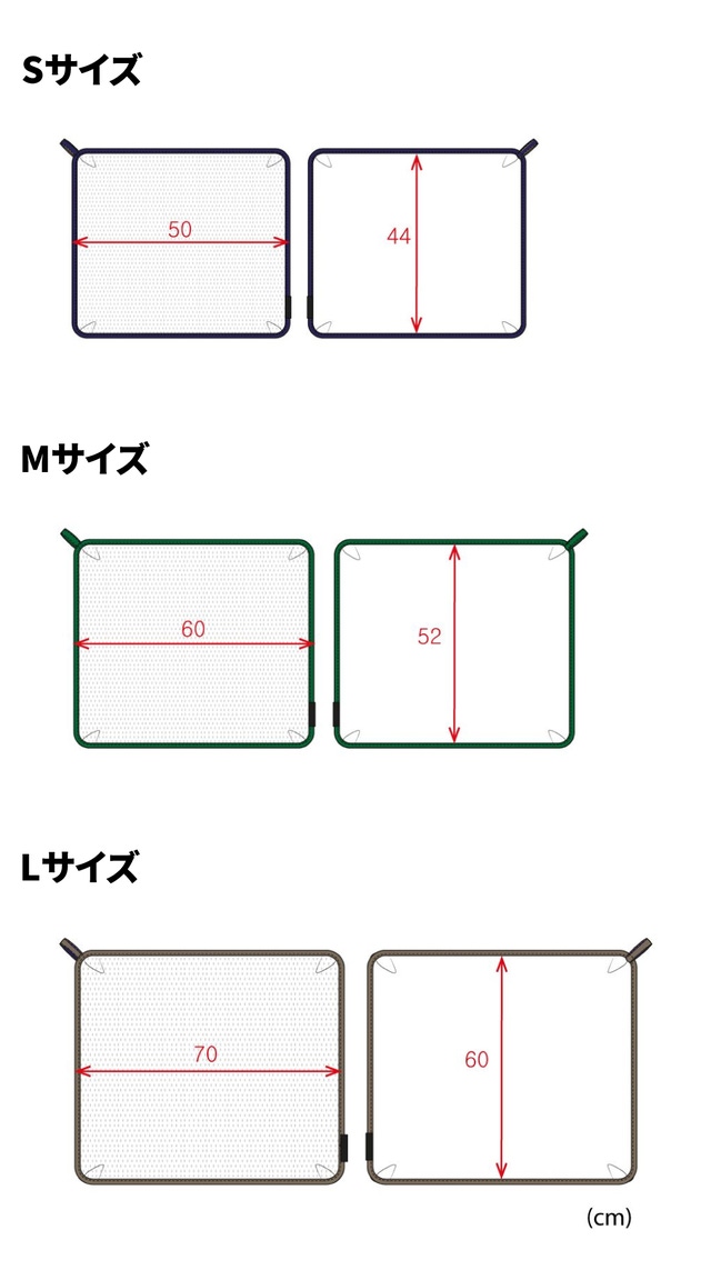 S : 50cm x 44cm : 2~4kg 小型犬推奨