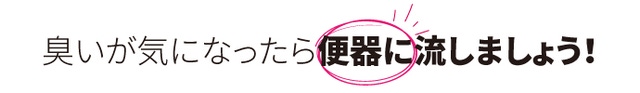 1.中に吸収された尿は、トイレを少し曲げてから便器にぬるま湯で薄めて流します。