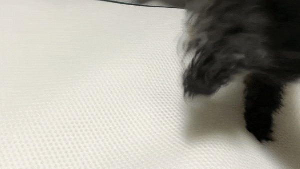 一般ペットシートの場合、尿が広がりながら吸収できない部分に当たると外に漏れてしまうことがよくありましたが、Ohnolaトイレは尿の当たる所からすぐに吸収されるので、トイレの外まで漏れにくいです。