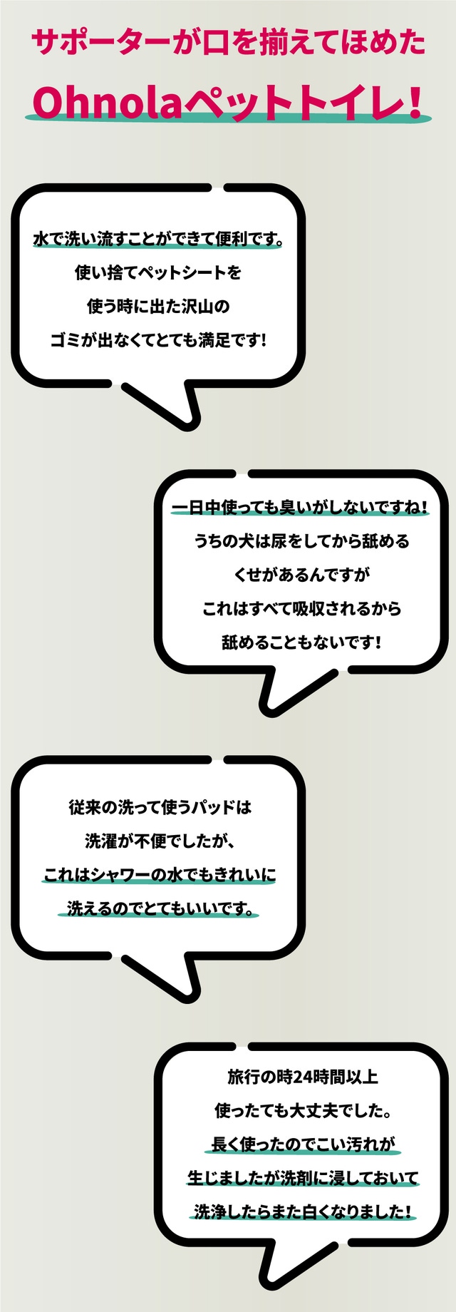 Ohnolaトイレはこのような悩みによって世の中に出ることができるようになりました。 家族が使用する製品であるため、長い研究と環境に優しい厳選された素材で製作されたOhnolaトイレ。どうかMAKUAKEの多くの飼い主様の方々が共感できる製品であることを願っています。