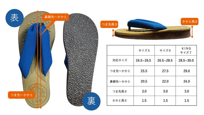サイズ感が不安な方は親指の付け根から踵までを測定していただき「鼻緒先〜かかと」の長さで選択ください。