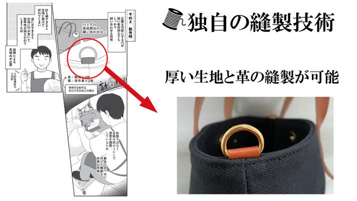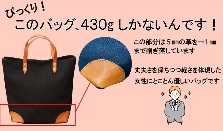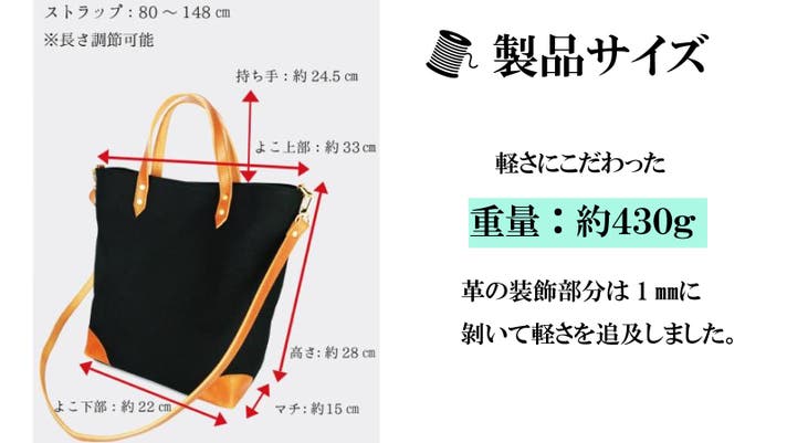 - 【牛本革と倉敷産帆布を使用】素材にこだわりました