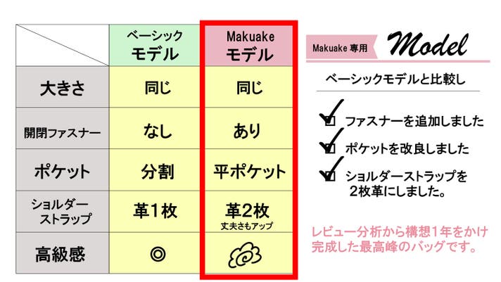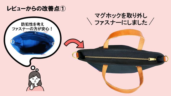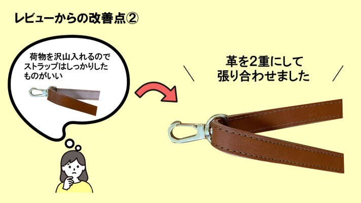 今回この大人気のバッグを販売するうえで、レビューをもとに改善してほしい