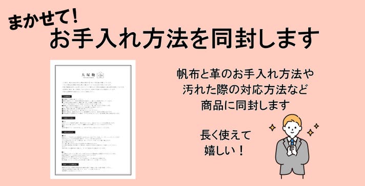 ※帆布や革は天然繊維の為、洗ってしまうと色移りや製品の劣化に繋がります。