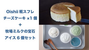 Oishii糀スフレチーズケーキ ×1個+牧場ミルクの宝石・アイス6個セット