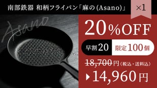 【超早割100個限定】南部鉄器和柄フライパン「麻の(ASANO)」20%OFF