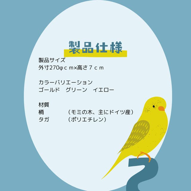 食品容器としても使用している木材を使い、桶作りを行っていますので、インコちゃんがかじっても大丈夫です。