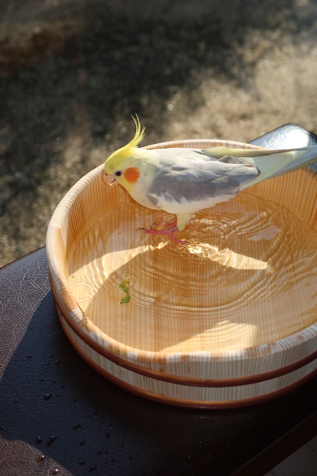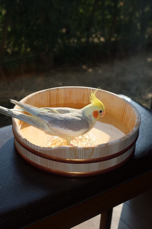 我が家のオカメインコ達は桶に水を張りましたが、水浴びをしてくれませんでした。水浴び目的はあきらめ他の使い方をしています。ストレスを溜めない為に室内に放鳥している際におやつとして粟の穂を与えているのですが、床が粟穂のくずまみれになっていました。水浴びOKに粟穂を入れて置くと飛び散り防止に役立っています。