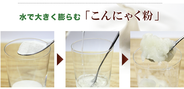 こんにゃくの主成分であるグルコマンナンは水溶性の食物繊維で、水を含むと大きく膨らみます。