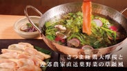 私たちは自ら農業もしています。その代表的な商品が鹿児島県の自社農場で育てたブランド鶏『さつま極鶏 大摩桜(だいまおう)』です。一般的な鶏肉の約3倍100日~150日かけて長期肥育することによる、肉の厚み、弾力、コシの強さが特徴的で、適度なサシが入りやすく、鶏本来の旨味を感じていただけます。鶏をお刺身で食べる食文化を持つ鹿児島で、生食基準の高評価を受けた処理法で加工した逸品です。薄くスライスした鶏肉をさっとお出汁にくぐらせて、たっぷりの野菜と一緒にお召し上がりください。