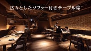 4名様がけのソファー付きテーブル席のほか、目の前で料理を仕上げる臨場感が楽しめるカウンター席、プライベートな空間でゆっくりとお過ごしいただける個室もございます。