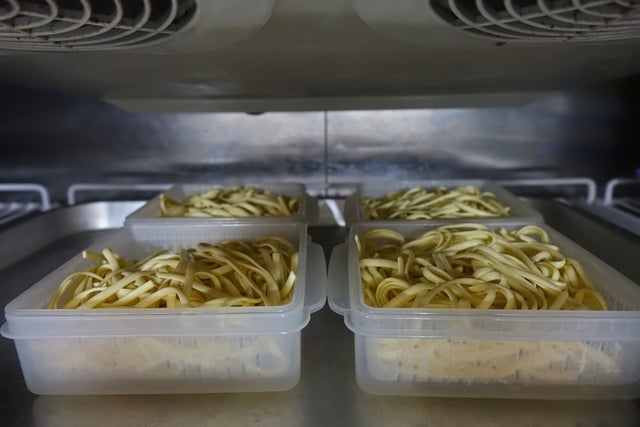 もちもち感があり、時間が経っても伸びにくい "リングイネ"を使い独自の技術で、3分間で茹で上がる冷凍パスタに完成させました。