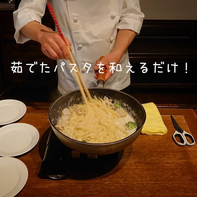 3分間茹でておき、温めたソースと絡めれば完成です。