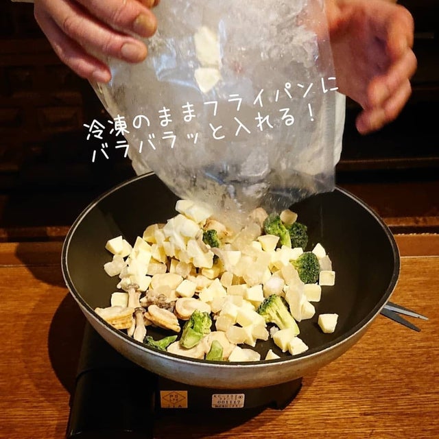 基本的には商品をフライパンに開けて、弱火から中火で温めるだけ。