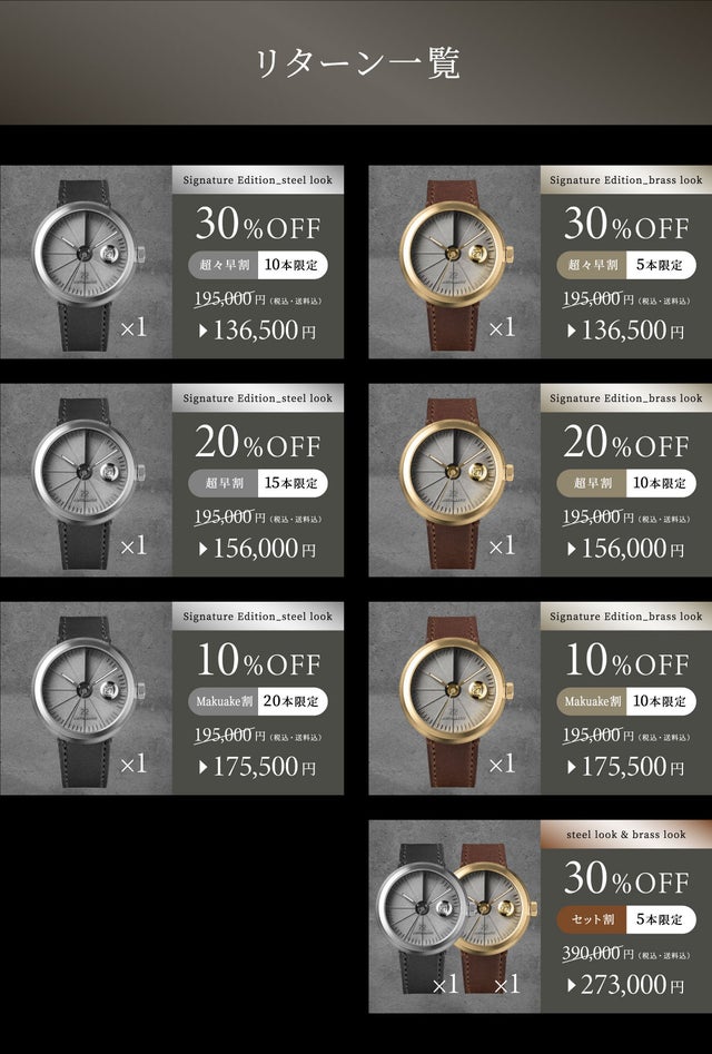 ※皆様の応援購入により量産効率が向上した場合、正規販売価格が販売予定価格より下がる可能性もございます。