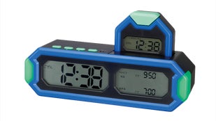 朝速やかに起きるには、夜決められた時間にしっかりベッドに入ることが重要。この時計は寝る時間のアラームも設定でき、その時間になると朝のアップテンポとは対照的なゆったりとした音楽が流れます。この音楽が流れたら、ベッドに入る時間。子機を持ち出して寝室に向かいます。 おきる時間になると、一転してアップテンポなアラームが流れ、子機を親機に戻さないとアラームは止まりません。