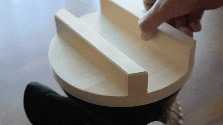 とはいえ、おいしく炊くには蓋が重要。どうせなら、昔ながらの“釜”のように、余分な蒸気を調整してくれる木の蓋がいい。そんな想いから、何度も試作を重ね、ようやくたどり着いたのが、木蓋づくりの職人との出会いでした。