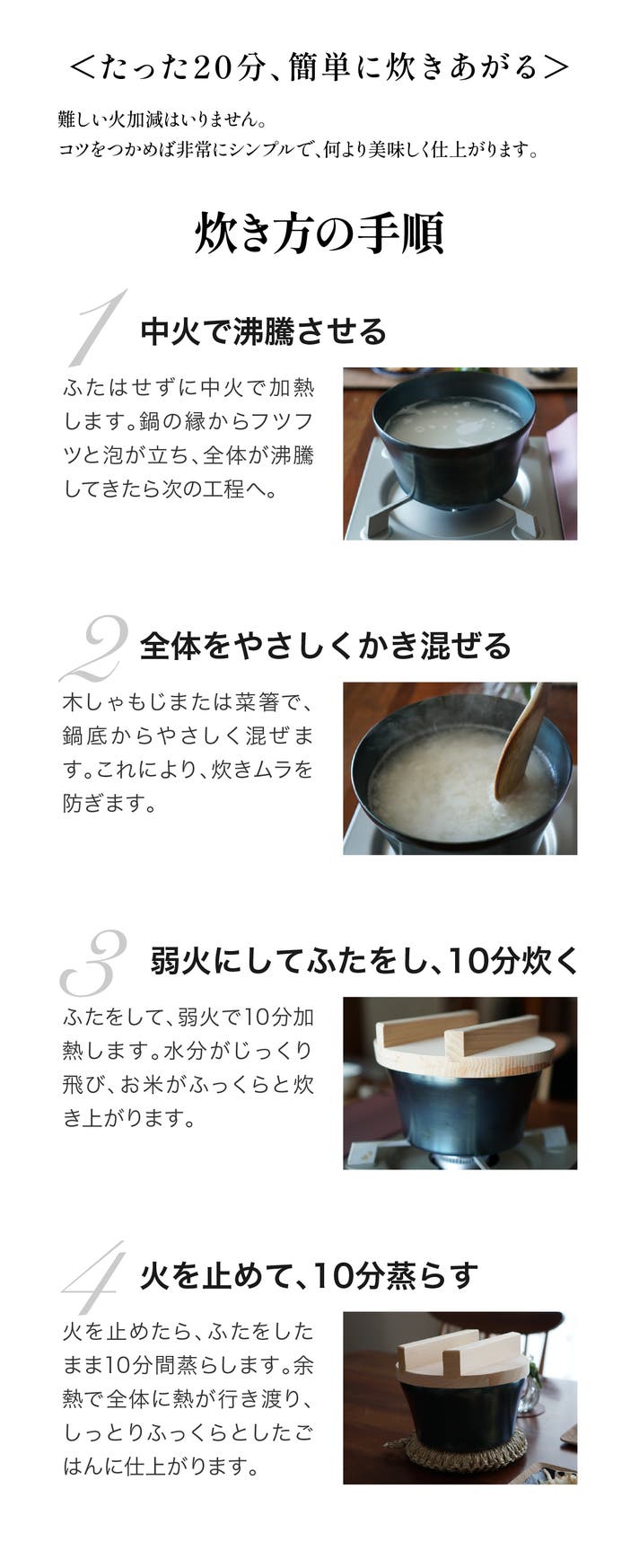 いつものごはんがこの鍋で炊くだけで、からだにやさしい一食に変わります。