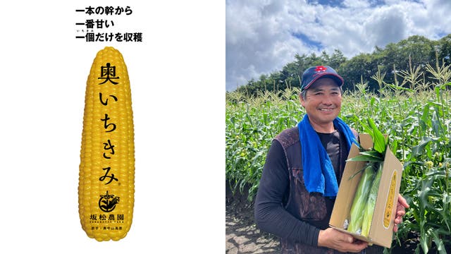 【奥いちきみ】は、一本の幹から一番甘い一個だけを収穫するを坂松農園オリジナルブランドとうもろこしです。(糖度20.5度令和4年度実績)