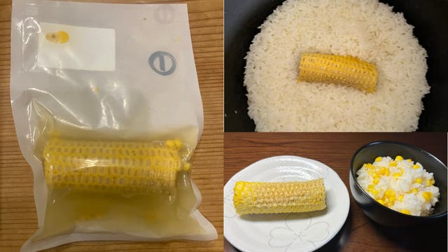 そこから何回もの試作を重ね、あえて「つぶ」には味付けをせず、「のだ塩」のみで味付けをした「芯」でご飯を炊き込み、炊き上がったご飯にあと混ぜをする方法によって、とうもろこしの旨みを全て味わいつくつことができる今回の製法にたどり着きました。