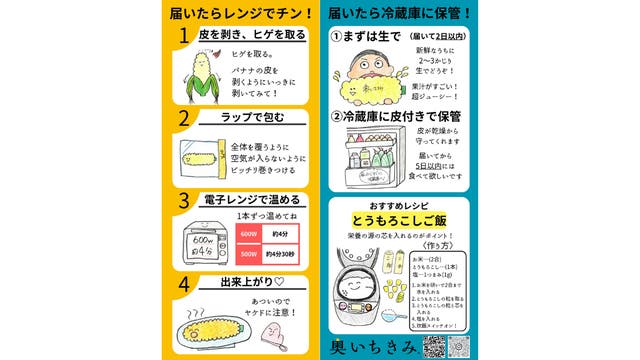 - 【糖度20度】一本の幹から一番甘い一個だけを収穫するスーパースイートコーン「奥いちきみ」を使用