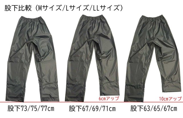 レインスーツのサイズ選択時に股下の長さは選べない。