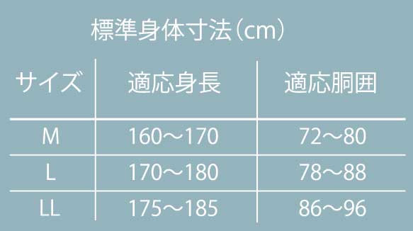 LLサイズ:適応身長175~185cm 適応胸囲96~104cm
