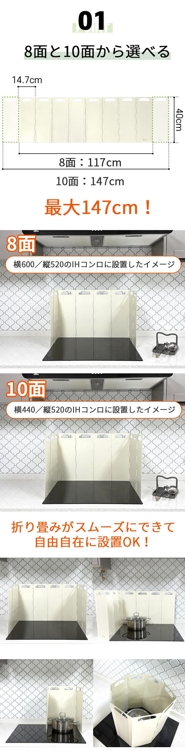 「MAKUAKE価格」OLG 折りたたみ式キッチンガード8面 1個、10面 1個