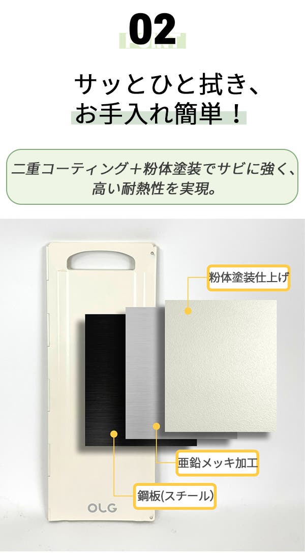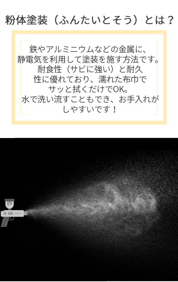 - 粉体塗装+亜鉛メッキで高耐熱&サビに強く、お手入れもササっとできちゃう手軽さ!