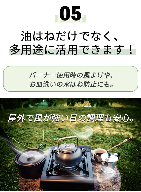 そんな家事や料理中に感じる、誰もが共感する“ちょっとしたお悩み”に耳を傾け、現場の声をもとに、実用性を重視した製品の開発を行っています。この《OLGレンジ用ガード》も、そうしたリアルな声から生まれました。素材・構造・安全性・使いやすさに徹底的にこだわり、何度も改良を重ねて完成した自信作です。これからもOLGは屋内・屋外を問わず、快適さと安心感をお届けできる製品を作り続けていきます。ぜひお手に取ってお試しください。
