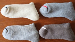 (左がOLTASメリノウールソックス 右が通常のコットンパイルソックス)